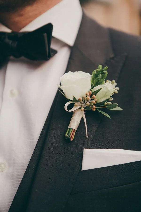 There is nothing more swoon-worthy than a man in a classic black tux with a classic white boutonniere. For classic weddings or just a classic touch, you can never go wrong with this favorite.